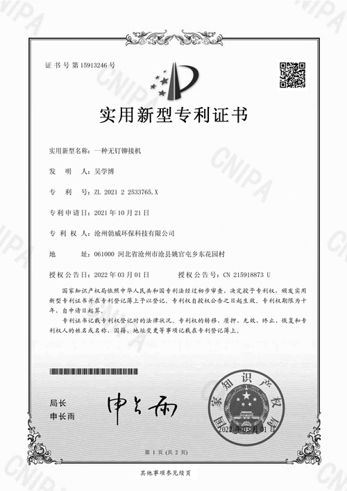 無(wú)釘鉚接機(jī)專(zhuān)利